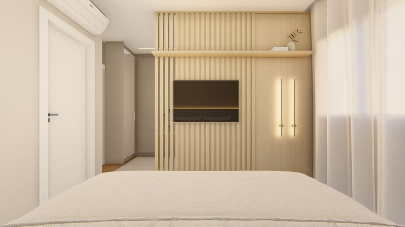 Estudo de layout com planta baixa humanizada, buscando a melhor funcionalidade do ambiente;